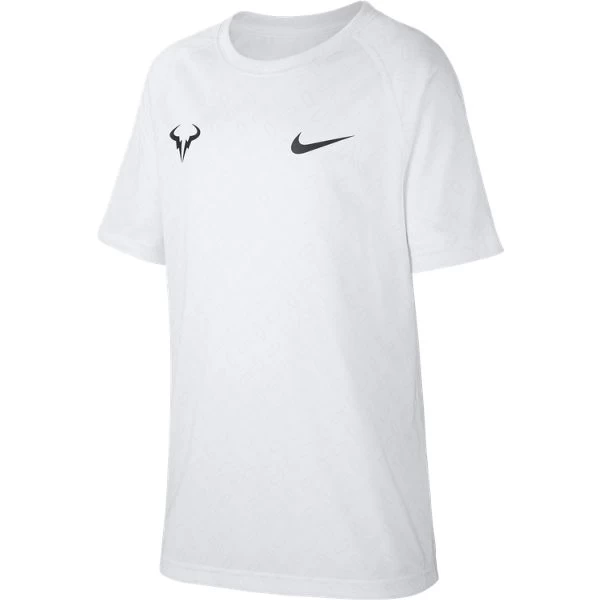 A class white shirt never goes out of style. This NikeCourt Dri-Fit Rafa top features the swoosh logo on the left chest and the Rafa logo on the right.