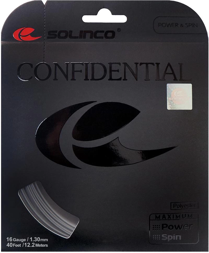 Solinco Confidential tennis string has a firm feel and soft response that will give players great spin and power. This string is a shaped co-poly that bites into the ball and lets you put a lot of spin and direction on the ball. Solinco Confidential tennis string settles quickly and holds tension well giving players great feel, performance and consistent playability.